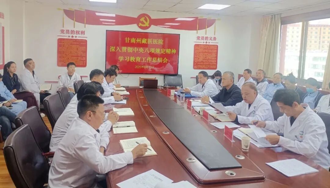 9月12日,甘南州藏医医院召开深入贯彻中央八项规定精神学习教育总结大会。会议由党总支书记李盛森主持,院领导班子、中层干部及全体党员参加会议。