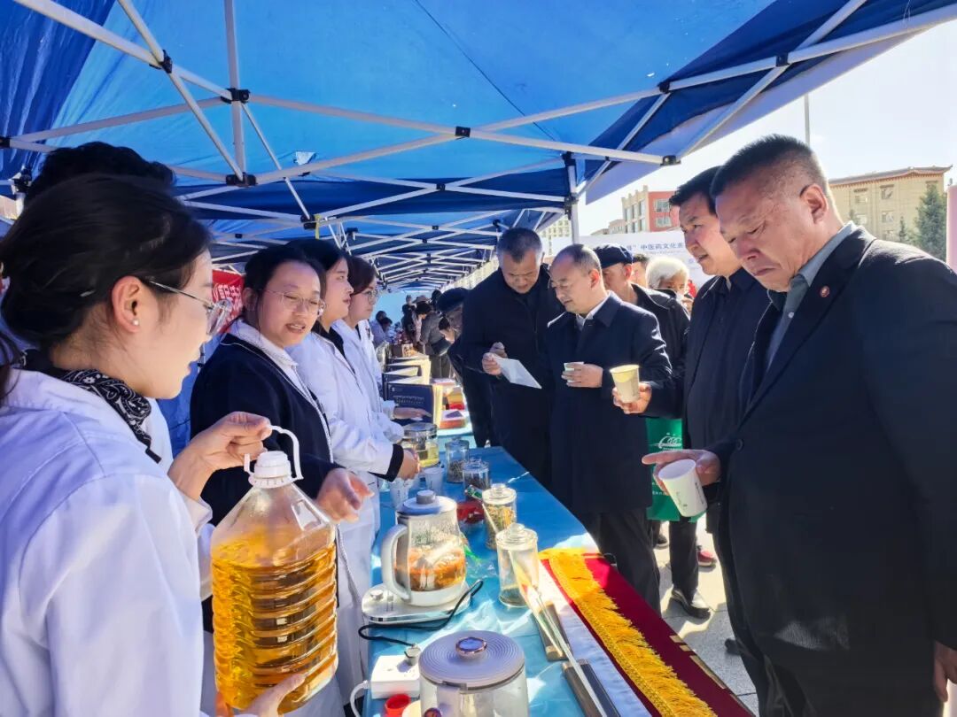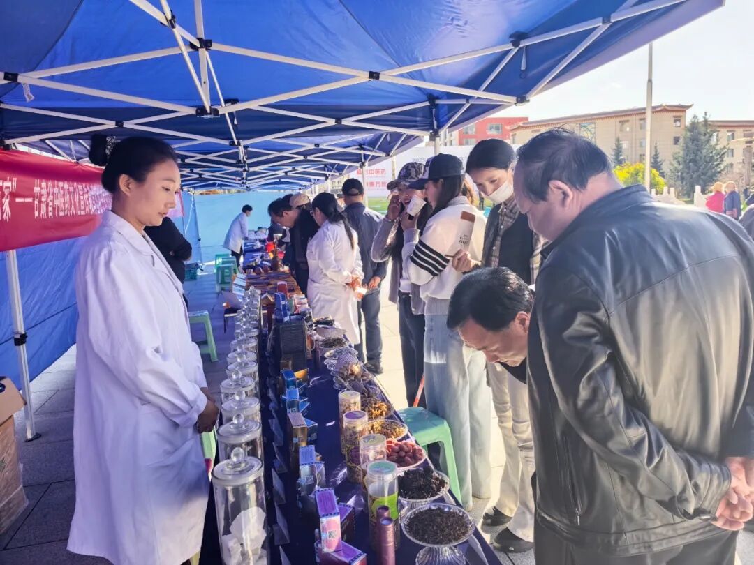 我院精心打造的“藏医药文化展示区”成为活动焦点。泛黄的藏医古籍、传统的藏医诊疗器械、品类丰富的藏药材标本与院内特色制剂有序陈列,工作人员还准备了温热的藏医保健养生茶供市民免费品尝,让群众在体验中感受藏医药的独特魅力。