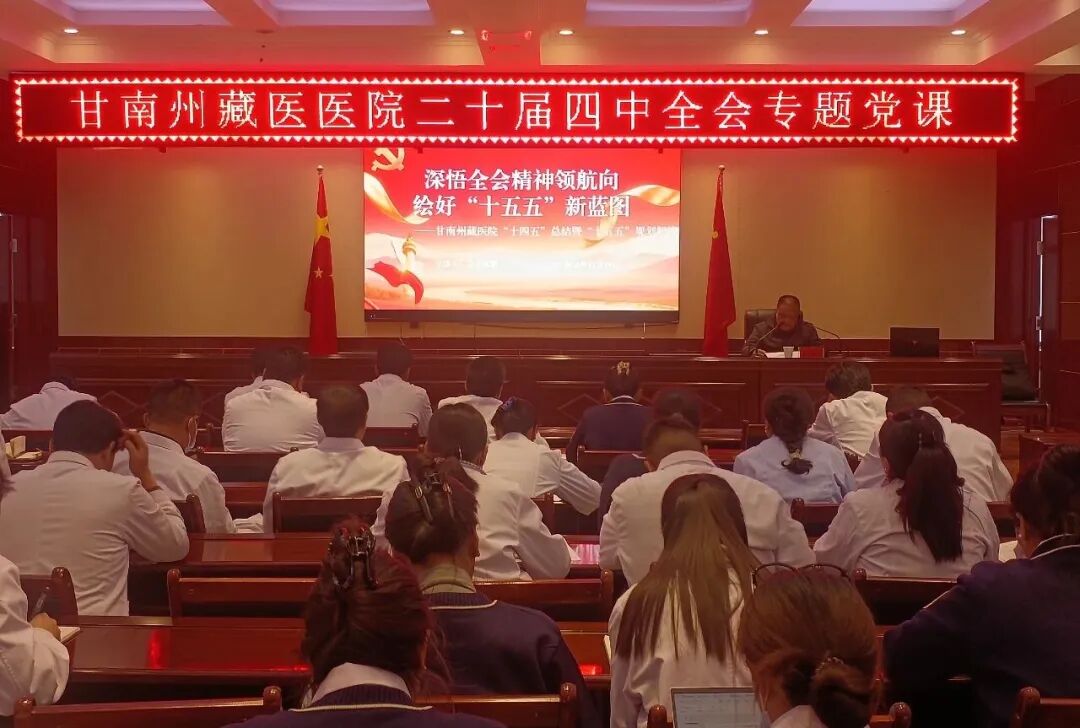 12月25日,甘南州藏医医院院长尕旦木加以《深悟全会精神领航向 绘好“十五五”新蓝图》为题,为院领导班子成员、各科室负责人及全体干部职工作专题党课辅导。