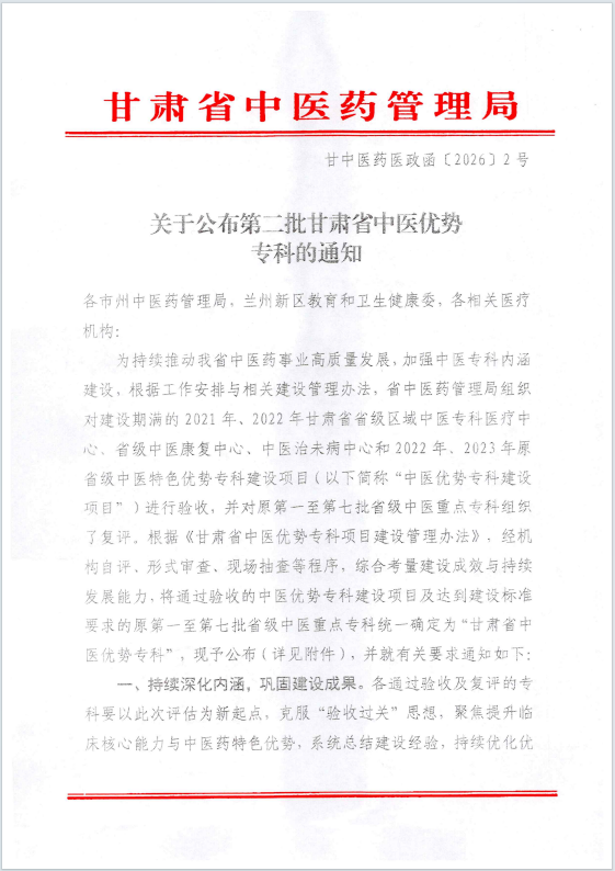 近日,甘肃省中医药管理局公布“第二批甘肃省中医优势专科”名单。甘南州藏医医院凭借扎实的专科建设与突出的临床疗效,其中藏药浴科、风湿病专科、特色外治专科、脑病科四个专科成功入选,标志着我院在专科建设与服务能力方面取得新突破