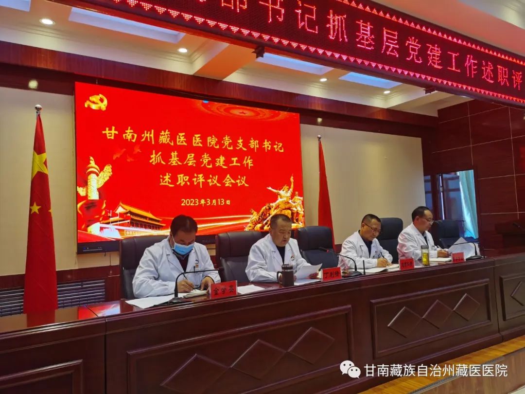 3月13日下午,州藏医医院召开2022年度党支部书记抓基层党建工作述职评议会。院党总支书记丁利锋主持会议并作讲话。班子成员、各党支部书记、全体党员参会。会上,3个党支部书记围绕贯彻中央、省州委、州卫健委党工委关于基层党建工作部署要求等内容,就抓基层党组织建设工作情况、存在的问题和下一步工作思路举措进行了述职。听取述职后,与会人员认真填写了评议测评表,对述职的各党支部书记抓基层党建工作情况进行评议。