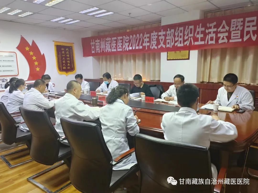 3月22日下午,甘南州藏医医院行政科研党支部召开2022年度组织生活会暨民主评议党员大会,州卫健委党组成员、副主任孙小勇到会指导,院党总支书记丁利锋、副院长道吉仁青以普通党员身份参加会议,医院支部、药厂药浴支部书记应邀列席会议。