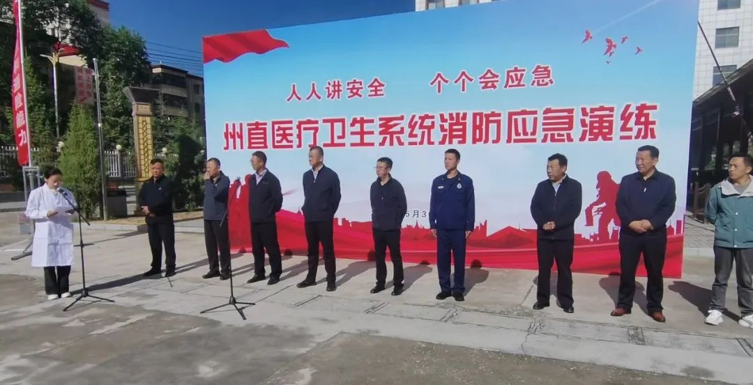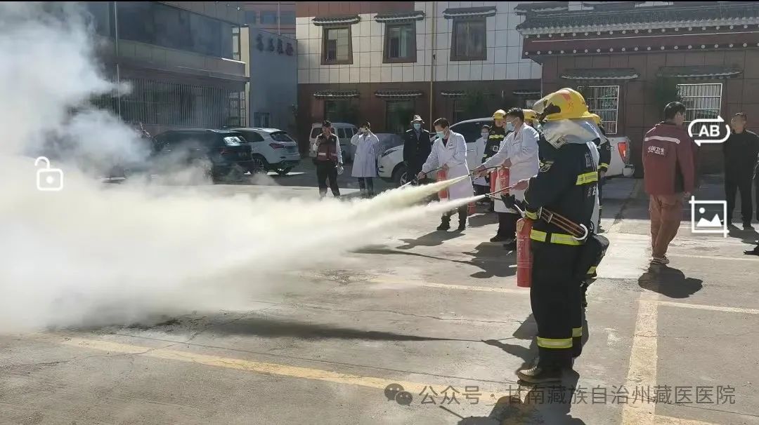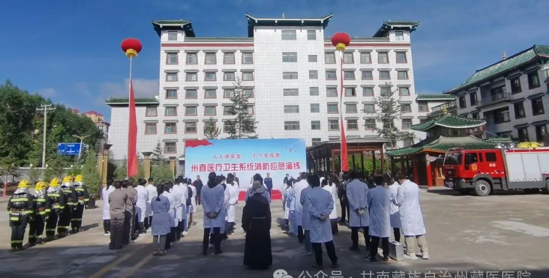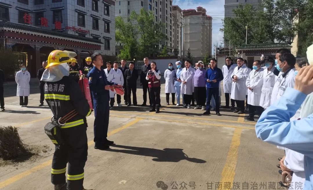 为进一步加强医院消防安全工作,普及消防安全知识,提高防火灭火和疏散逃生自救互助能力。5月30 日,由州卫生健康委主办的州直医疗卫生系统消防应急演练在甘南州藏医医院举行,演练邀请合作市消防救援大队现场指导。州卫健委党组成员、副主任贾占俊及部分州直医疗卫生单位负责人现场观摩,医院全体干部职工、部分家属参加演练。活动由院党总支书记李盛森主持。