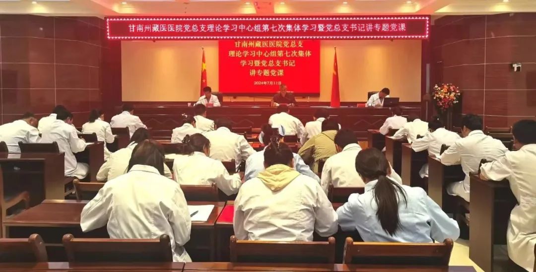 7月11日上午,甘南州藏医医院党总支组织召开理论学习中心组第七次集体学习暨党总支书记讲专题党课,会议由李盛森同志主持,院班子成员、全体党员及中层干部参加。