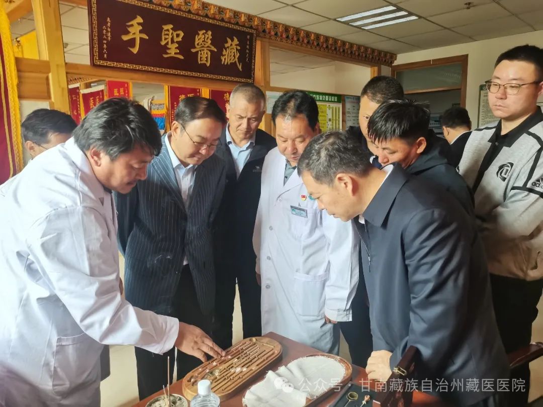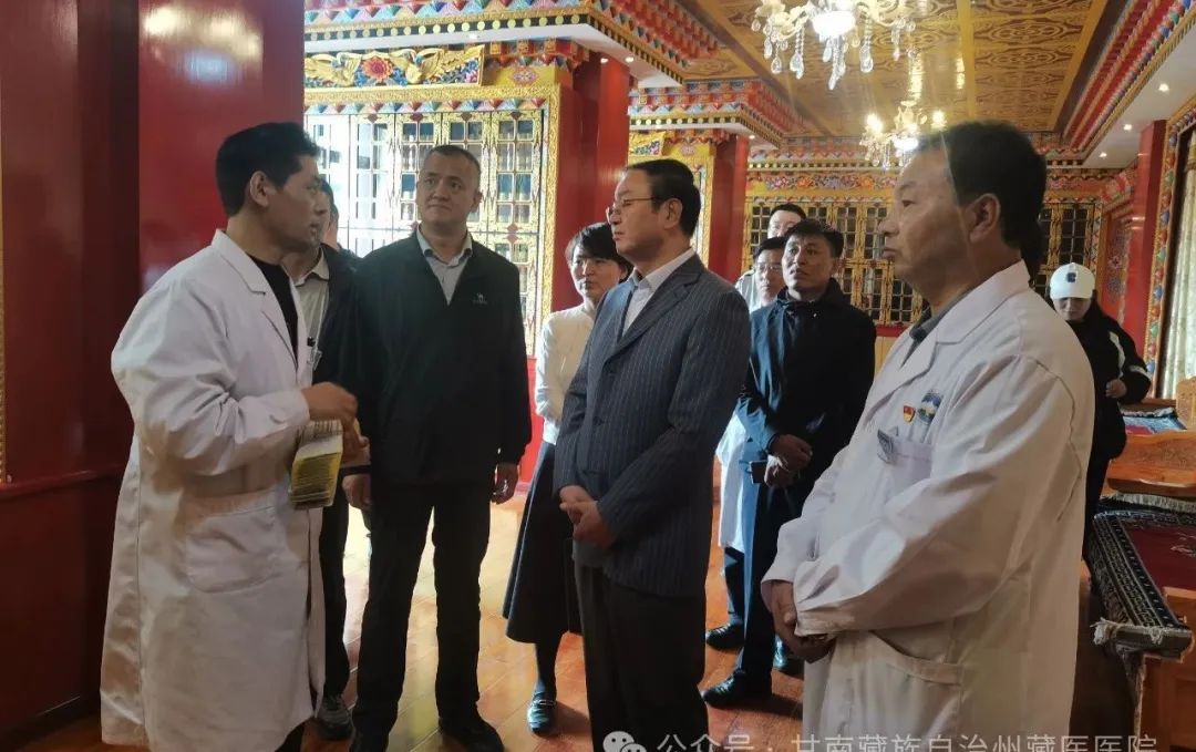 7月24日,省科协主席张世珍,第一副主席包俊宗一行在州科协主席赵凌平的陪同下来我院调研指导藏医药文化科普工作。州卫健委党组书记、主任马彪顺,党组成员陈建红,州藏医医院领导班子成员及相关科室负责人陪同介绍。