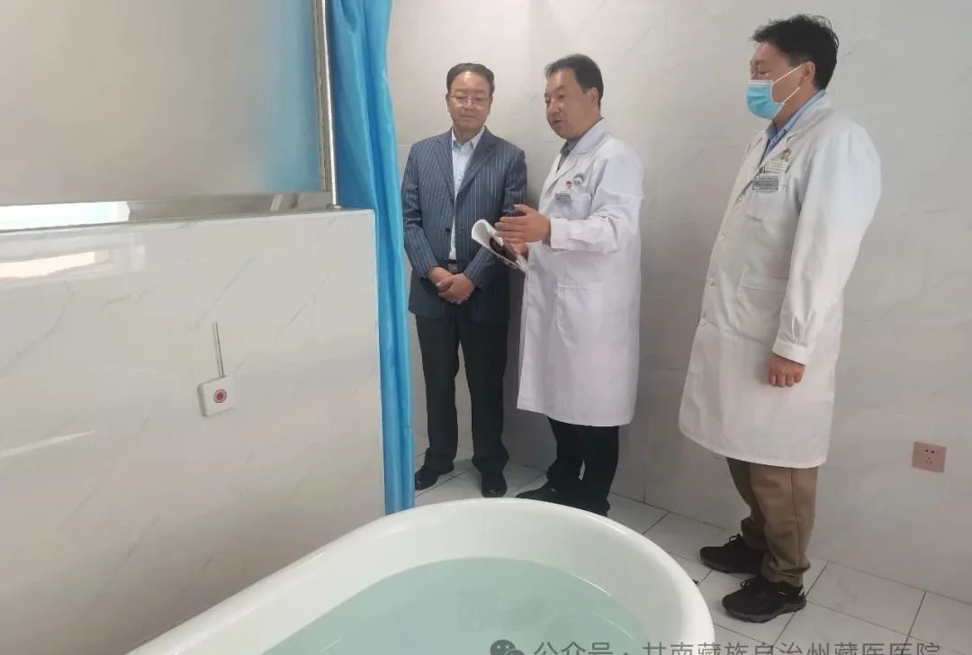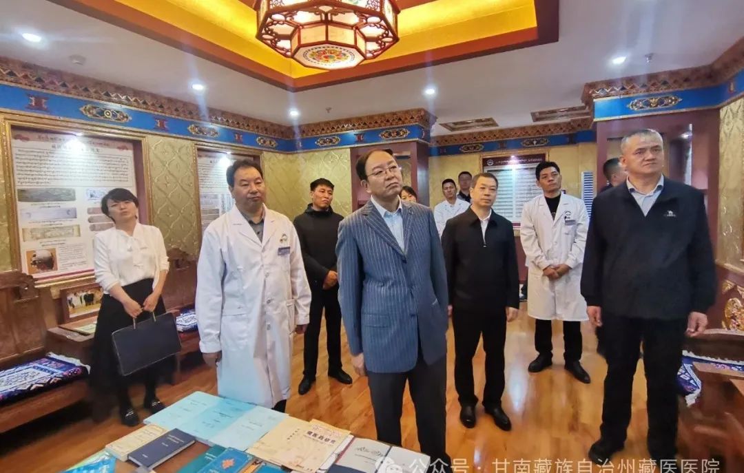 张世珍一行参观了我院藏医药文化长廊,藏医药文化展示馆,古籍资料室,特色外治诊室,药浴诊疗中心等地,与医务人员及科技工作者亲切交流,了解我院藏医特色诊疗、科研发展水平、人才培养和队伍建设、藏医药文化传承与创新能力等,对我院的发展成效和取得的成绩给予高度评价。