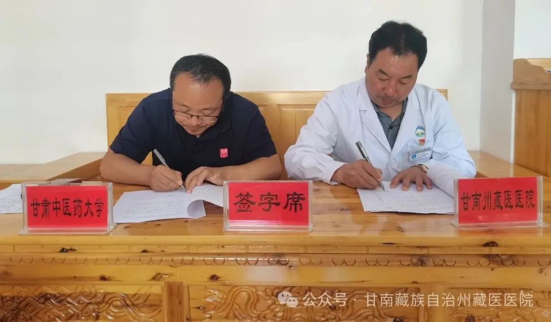 8月21日,甘肃中医药大学与甘南州藏医医院、玛曲县藏医院在我院六楼会议室举行科研和技术合作协议签约仪式,标志着双方在科研合作、技术创新及人才培养等领域迈出了坚实的一步,开启了合作共赢的新篇章。甘肃中医药大学科技处副处长王强、甘肃中医药大学药学院副院长何春雨、州卫健委党组成员陈建红、玛曲县藏医院负责人及我院班子成员、各研究所负责人参加签约仪式。仪式由陈建红主持。 陈建红在致辞中高度评价了甘肃中医药大学在中医药领域的深厚底蕴与卓越成就,并表达了对未来合作的美好憧憬与坚定信心。