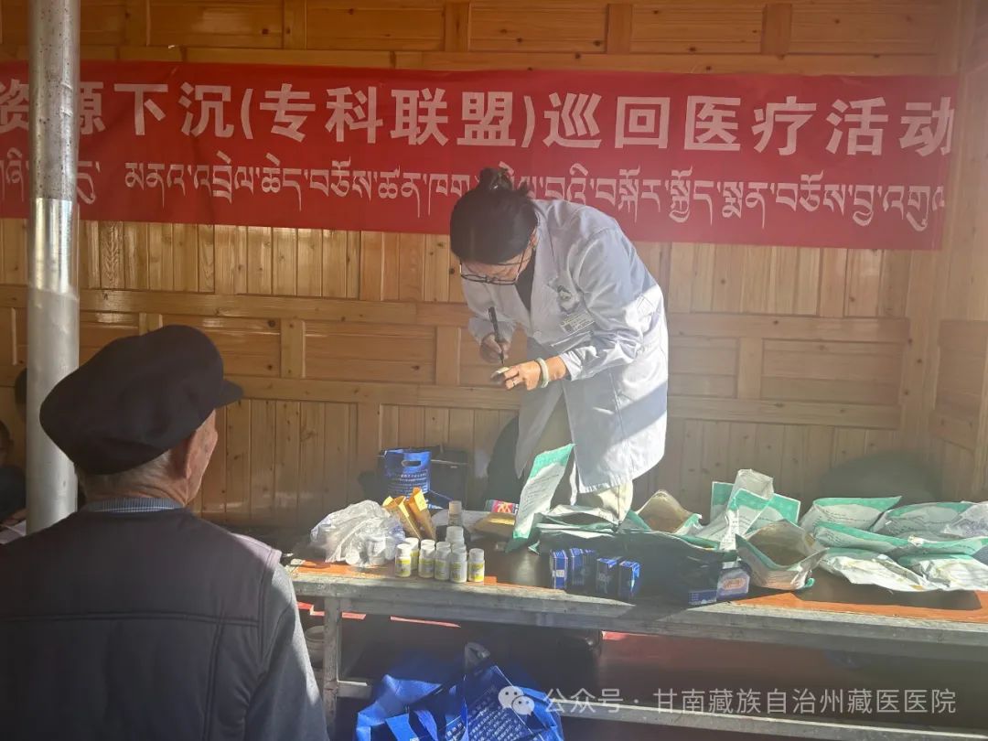 为深入贯彻落实国家关于优质医疗服务资源下沉的政策精神,进一步发挥藏医药专科联盟牵头作用,加强基层医疗卫生服务能力。根据省、州有关文件要求,我院制定优质医疗资源下沉(专科联盟)巡回医疗活动工作制度,逐步深入州内部分乡镇卫生院开展巡回医疗活动。进一步提升基层医疗卫生服务水平,让农牧民群众及时了解国家医疗惠民政策,宣传藏医药文化以及藏医药健康保健知识,提高群众健康意识和自我防病治病能力,使更多的患者能够体验、感受藏医药神奇疗效,充分发挥藏医药独特魅力。11月28日,甘南州藏医医院藏医主任医师贡保加、藏医主任医师久仙加、藏医主任医师卡毛吉、藏医主治医师卓玛加一行4人赴合作市那吾镇南木娄街道办旦子囊村开展优质医疗资源下沉专科联盟巡回医疗活动。