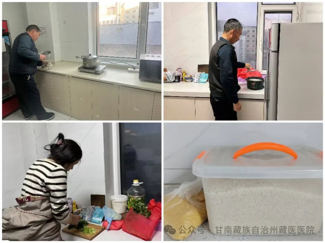 进一步提升患者及其家属的就医体验,甘南州藏医医院推出了一项温馨而贴心的举措——在住院部的每个科室都设立了专门的配餐室,并免费提供大米、小米、红枣等食材,为患者家属提供了一个干净、便利的烹饪环境,让爱与关怀在病房里延续。