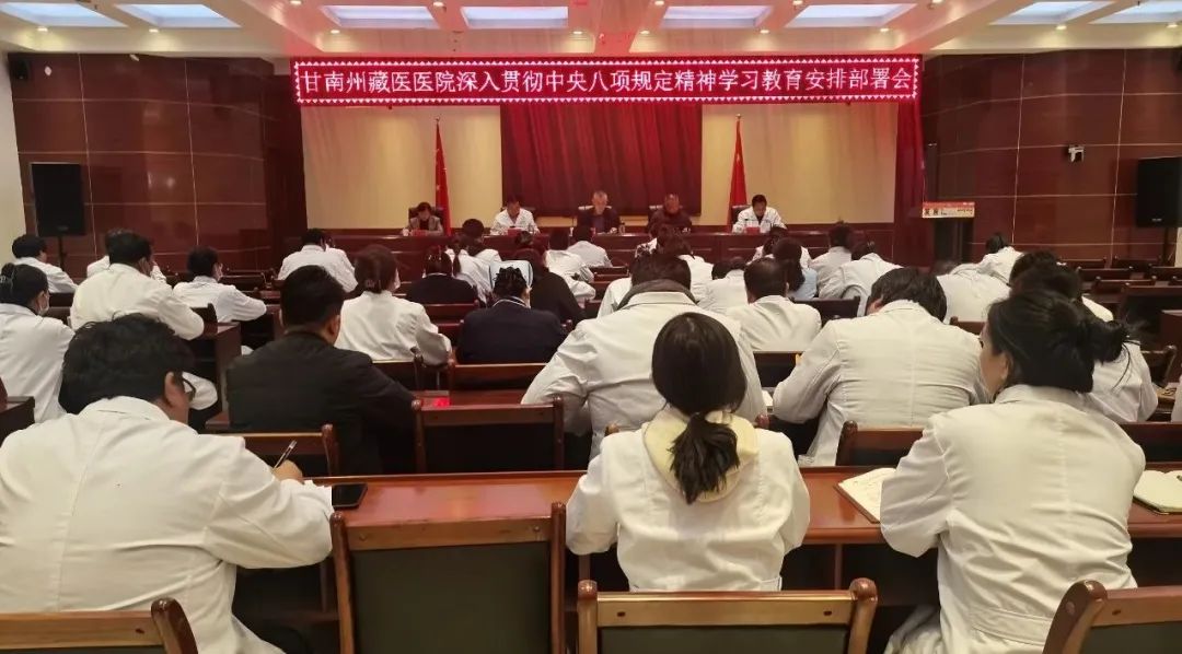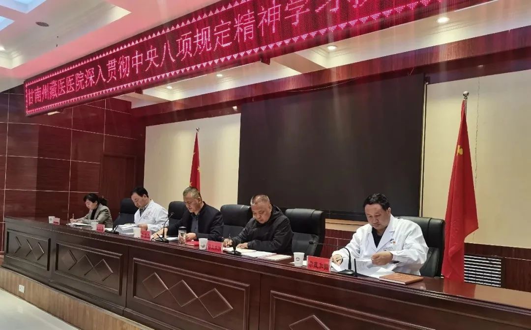 3月20日下午,州藏医医院召开深入贯彻中央八项规定精神学习教育安排部署会。院党总支书记李盛森主持会议并讲话,院领导班子成员及全体干部职工参加会议。