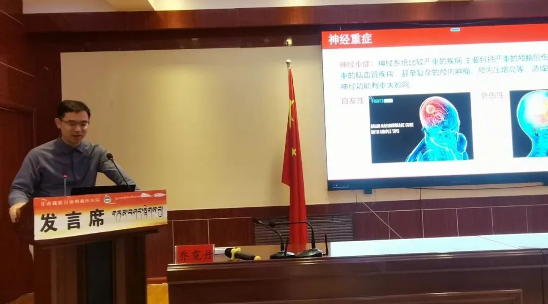 我院副院长、藏医副主任医师尕藏校郎以“藏药二十五味余甘子丸对高原红细胞增多症临床疗效研究”为题,汇报了医院在藏药治疗高原病领域的研究成果,展现了藏医药在特色疾病防治中的独特优势。