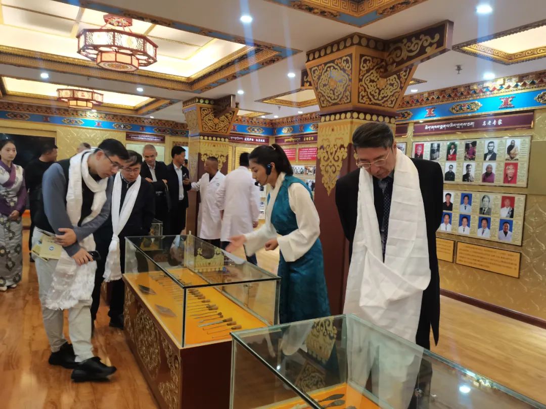 专家团一行实地参观了医院藏医药文化长廊、藏医药文化展示馆、古籍资料室,了解了藏医药源远流长的历史脉络、独特的理论体系、深厚的文化底蕴以及医院发展史和院内制剂。参观过程中,专家们与我院专家就藏医药的传承、保护及其与现代医学融合发展路径进行了探讨。