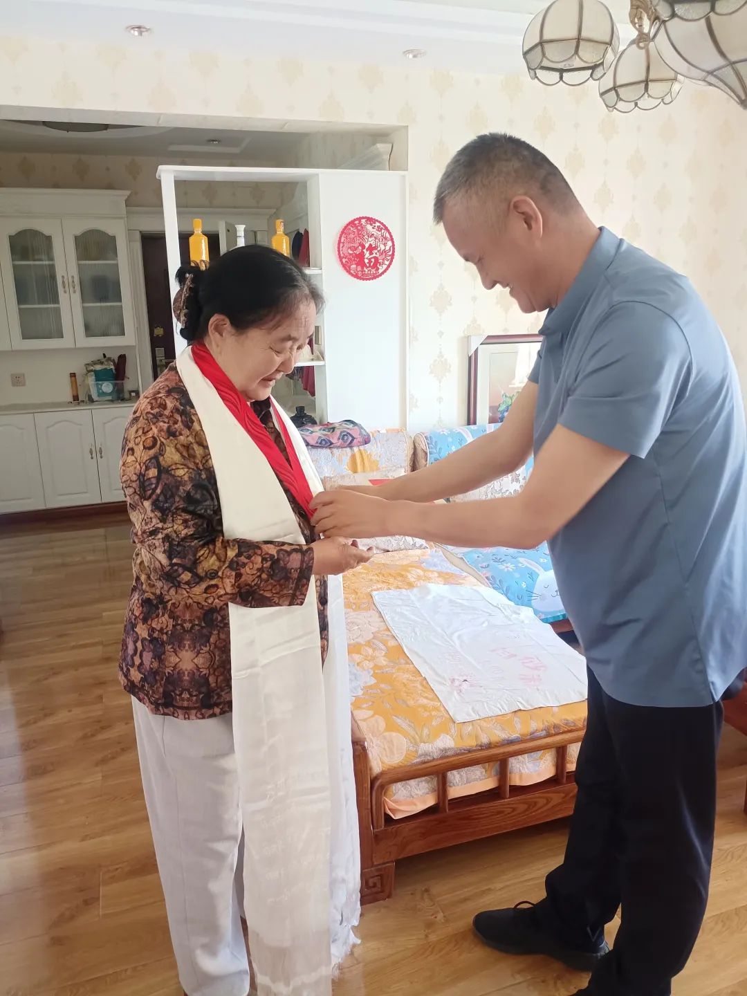 在中国共产党成立104周年之际,为表达对老党员的崇高敬意和节日问候,激励广大党员赓续血脉、勇毅前行。6月27日,甘南州藏医医院党总支书记李盛森带领相关人员上门为老党员送去“光荣在党50年”纪念章,并代表院党组织向她送上慰问金,将党的关怀与荣誉送到老党员家中。