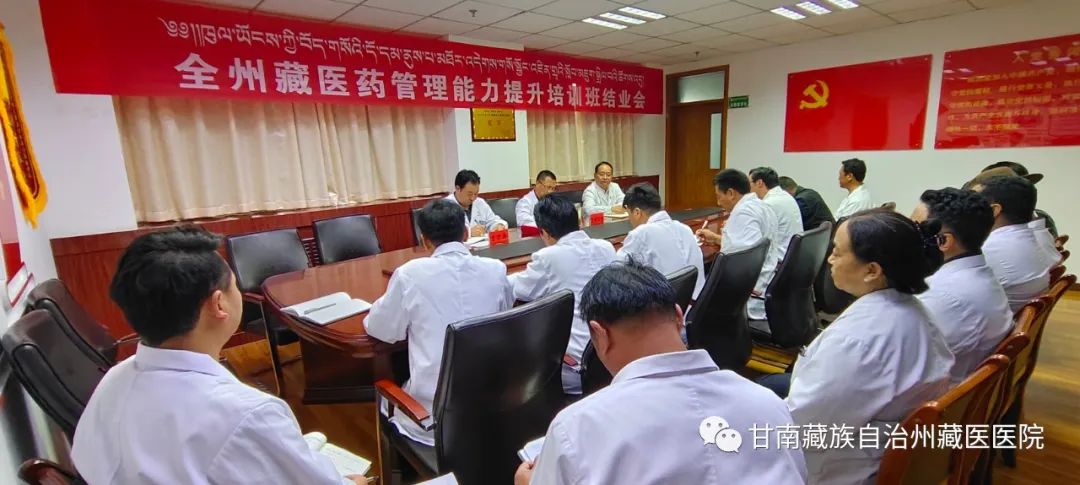 9月18日,由州卫健委主办,州藏医医院承办的全州藏医药管理能力培训班顺利结业并在甘南州藏医医院召开了结业总结会。州藏医医院院长道吉仁青,副院长金学英、楞本才让参加会议并为参训学员颁发了结业证书。会议由副院长金学英主持。