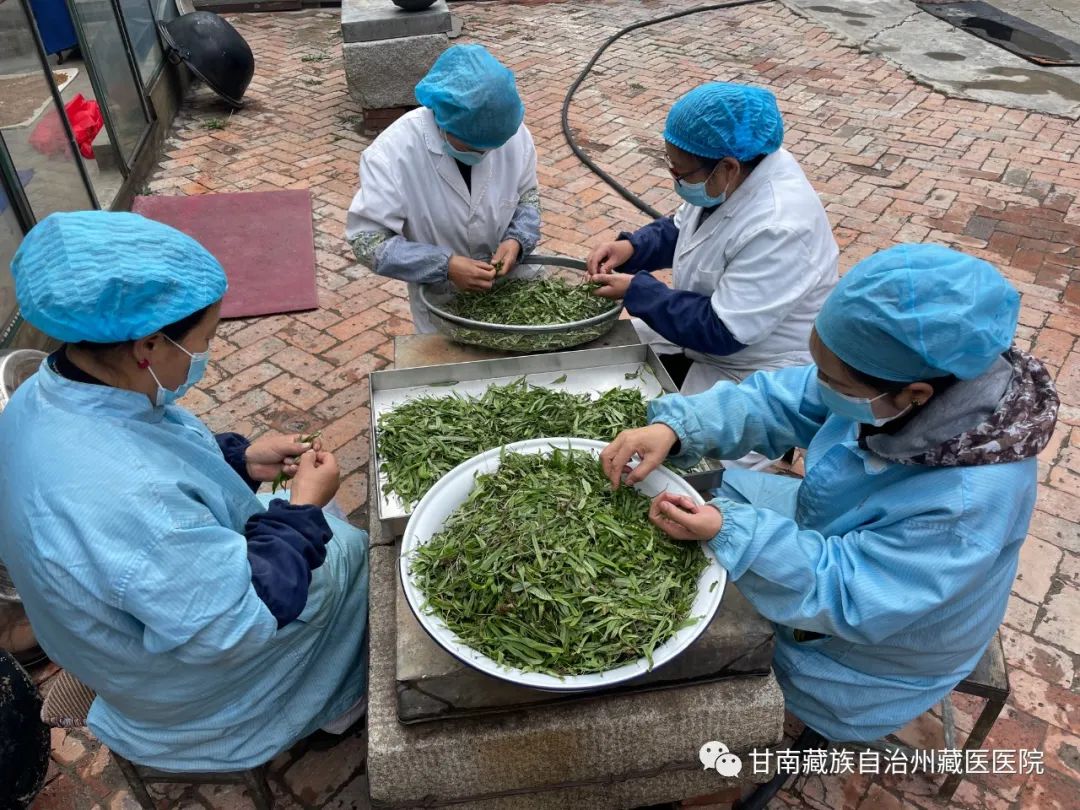 活动结束后,野外采收的藏药材由医院制剂中心工作人员加班加点及时进行筛拣、清洗、阴干炮制等加工程序。