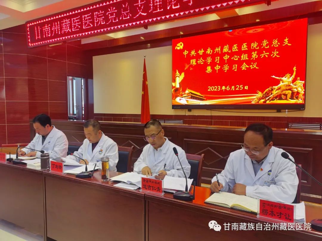 根据医院党总支理论中心组集体学习计划,6月25日下午,甘南州藏医医院召开党总支理论学习中心组集体学习会议,会议由党总支书记丁利锋主持,院领导班子成员出席会议、全体中层干部列席。